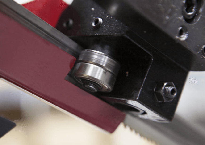 Подвижная направляющая, зубчатый блок, с твёрдосплавными плаcтинами и подшипниками для выпрямления полотна в зоне резания. |