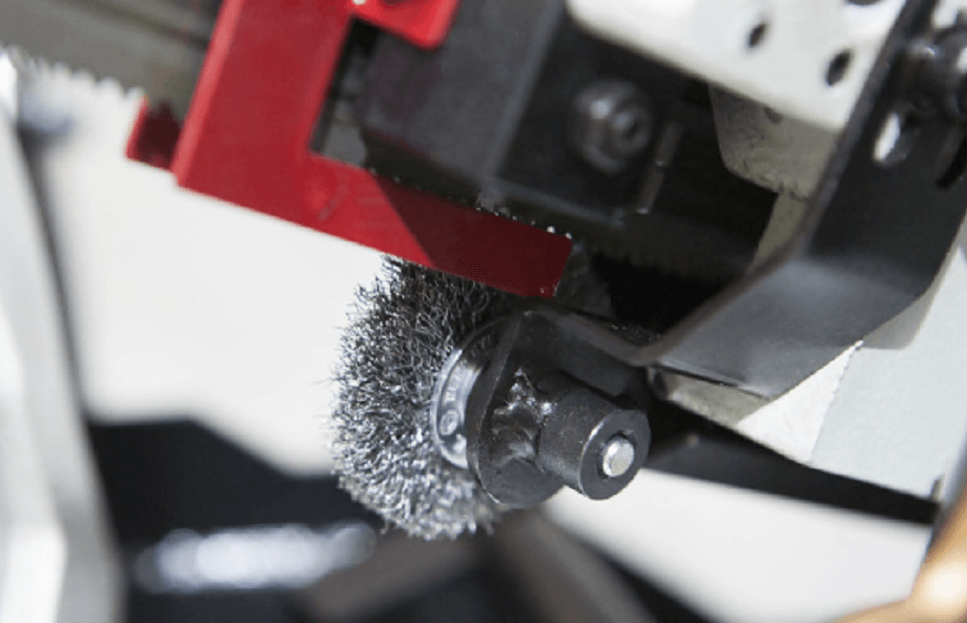 Зубчатый блок, с твёрдосплавными платинами и подшипниками для выпрямления полотна в зоне резания и качественной фиксации для стабильного пиления. Механическая щётка для очистки полотна.